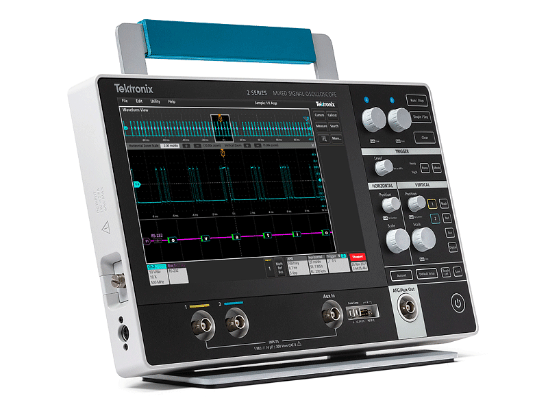 Das MSO Serie 2 verfügt über bis zu 4 analoge Kanäle, 500 MHz Bandbreite, 2,5 GS/s Abtastrate, 16-Kanal-MSO, 50 MHz AFG, einen digitalen 4-Bit-Mustergenerator, erweiterte Trigger, Protokolldekodierung und DVM. All das in einem kompakten Formfaktor, was es zum idealen Oszilloskop für elektronisches Debuggen und Testen macht – egal wo Sie arbeiten.